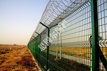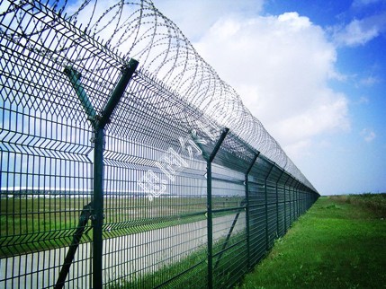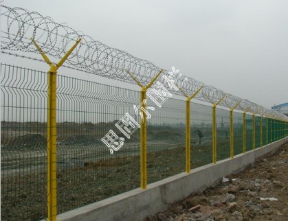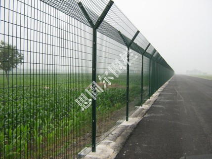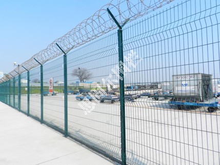 飛機場圍欄又稱作“Y型安全防御護網”,是由V型支架立柱,加強型焊接片網,安全防盜連接件和熱鍍鋅刀片刺籠組成強度和安全防御性級別很高。近年來,被廣泛應用在機場,軍事基地等高安全場所。