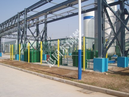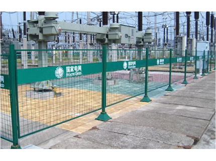 網片表面鐵板經浸塑之后絲網印刷國家電網標志。標志新穎,主題突出。是國家電網護欄網與其他護欄網明顯的區別,組裝十分靈活,快捷,方便.色彩鮮艷、抗老化、防腐蝕、強度高。外力撞擊不易變形。