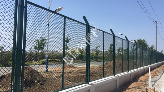保稅區(qū)圍欄網(wǎng)孔菱形狀,堅(jiān)固美觀,不容易變形。防攀爬性好。表面采用浸塑處理,防銹時(shí)間長(zhǎng),鋼板網(wǎng)圍墻通風(fēng)性能好,安裝方便。