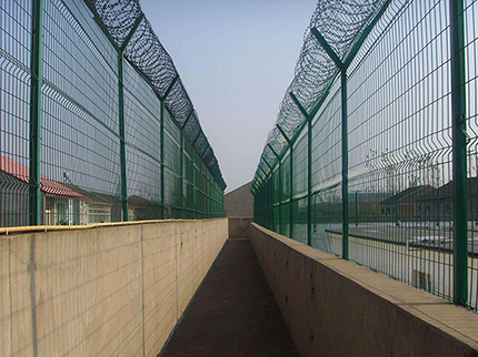 監獄護欄網又稱作“Y型安全防御護網”監獄鋼網墻,是由V型支架立柱,加強型焊接片網,安全防盜連接件和熱鍍鋅刀片刺籠組成強度和安全防御性級別很高,近年來,被廣泛應用在監獄,機場,軍事基地等高安全場所。